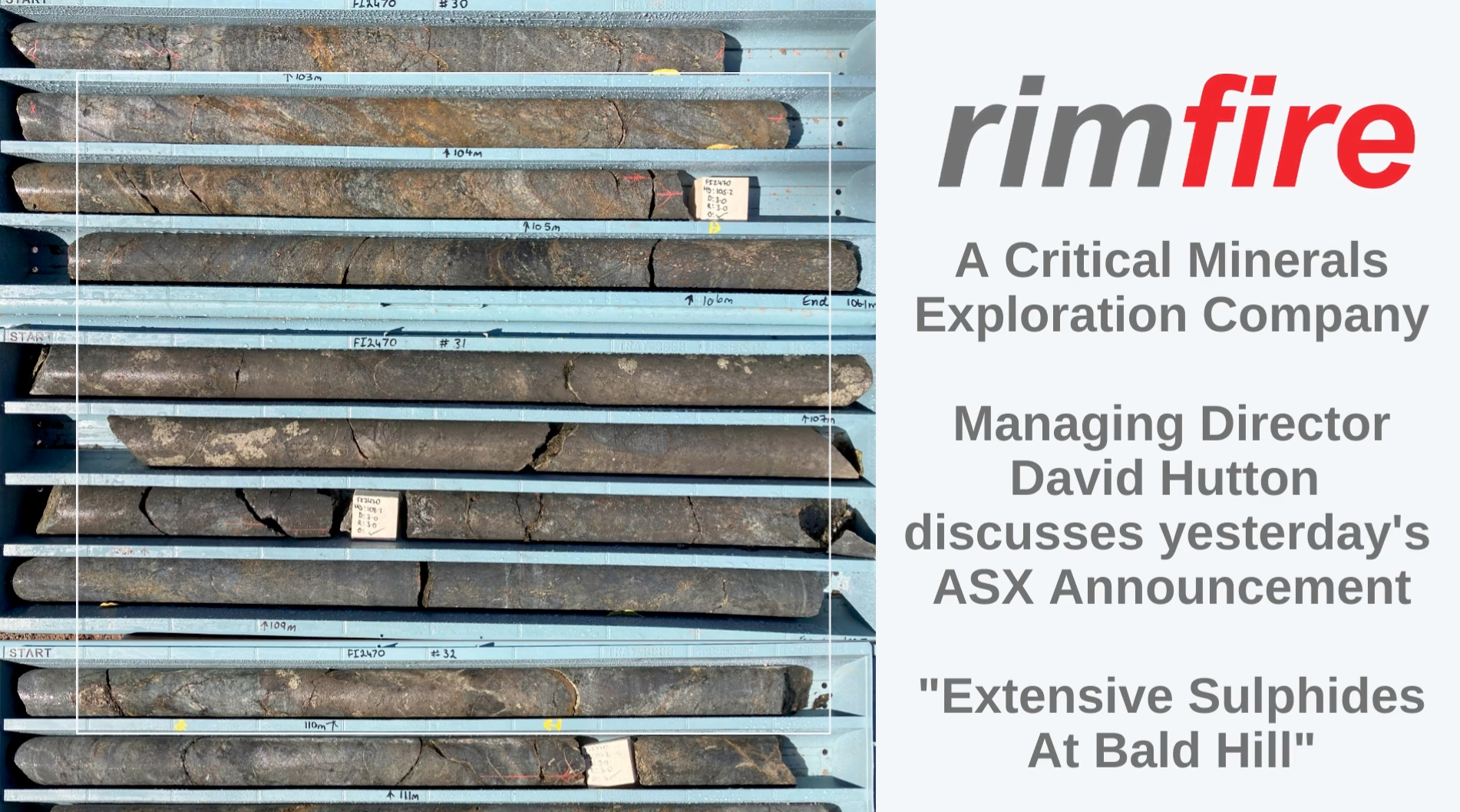 Rimfire MD David Hutton discusses ASX Announcement "Extensive Sulphides at Bald Hill"